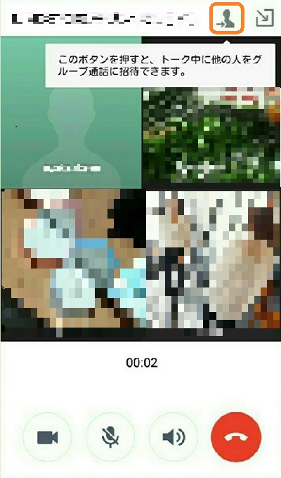 (1)その人をグループ通話に招待するには、画面の右上の人のマークをタップします。