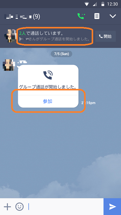 トーク画面の「参加」をタップしてグループ通話に参加しましょう。
