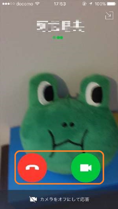 ・今は顔を見せられない、映せる場所にいないときに 音声だけで出たい場合は、「右下の白いボタン」をタップします。 すると、カメラをオフにして通話ができます。