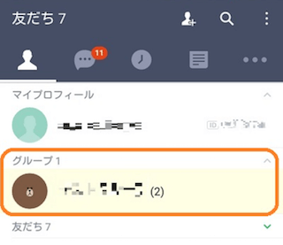 (※)グループに参加しているか確認するには、 「友だち」画面の「グループ」の欄から確認できます。
