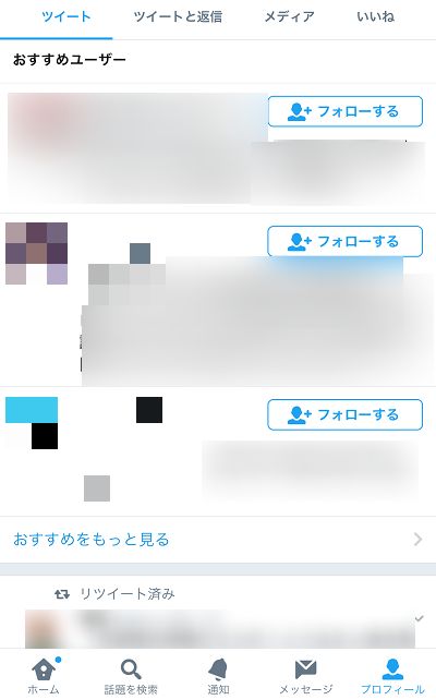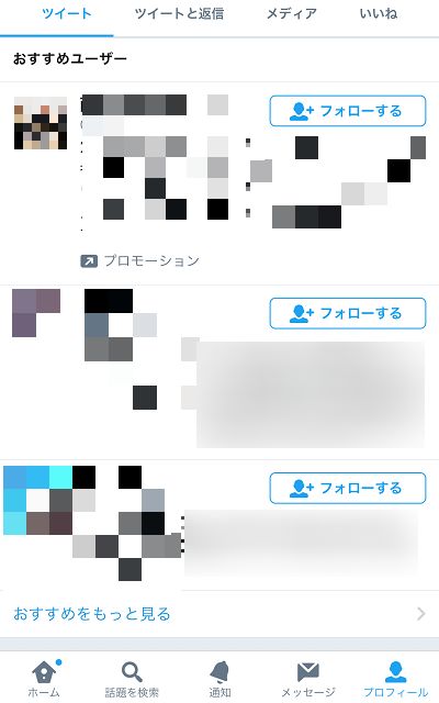 Twitterの自分のプロフィール画面で「おすすめのユーザー」を見つける