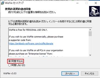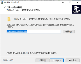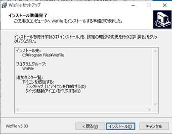 最後に[インストール]を押すとWizFileがインストールされます。