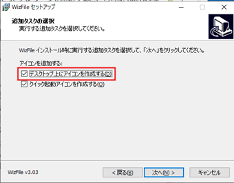 ショートカットアイコンを作成しない場合は[デスクトップ上にアイコンを作成する]のチェックを外した上で次に進めて下さい。