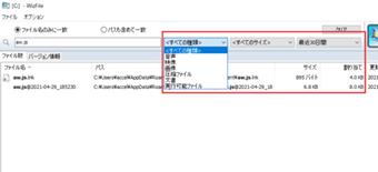 ファイルの種類・ファイルサイズ・更新日時でフィルタリングした上で検索することも可能です。