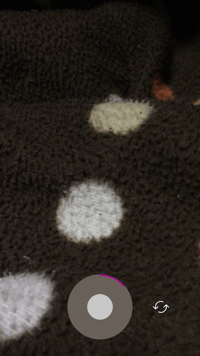 ストーリーを起動すると、画面下部の中央にボタンがあるので押してみましょう。軽く一回押すと静止画、長押しすると最大10秒の動画を撮影することができます。