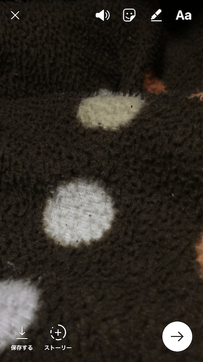 これを押すと端末に撮影した画像や動画を保存することができます。投稿したい場合は、ストーリーを押してください。また、撮り直したい場合は左上の×を押してください。