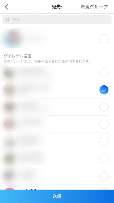 送りたい方にチェックを入れ、送信を押せば特定の方のみに送れます。Snapchatやスノーからしたらこの機能は脅威ですね。