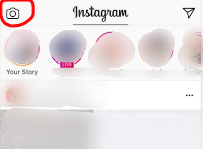 左上のカメラマークをタップしてください。するとストーリー投稿画面が開きます。