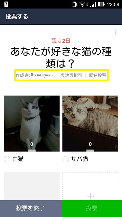 このLINEの「投票」はそのグループに参加している人だけが、回答、観覧、作成できる機能です。