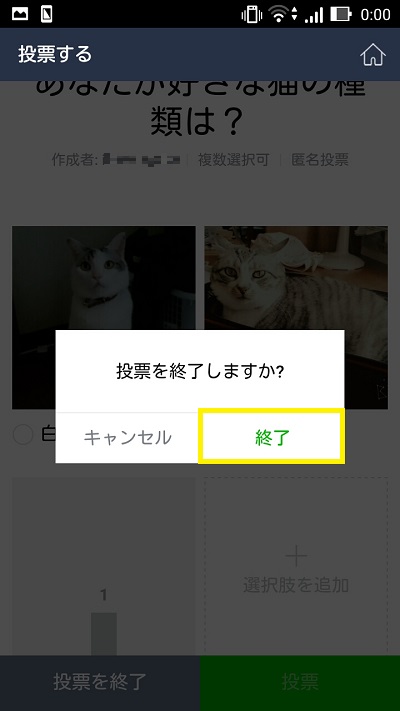 (2)次の画面で「終了」をタップしたら、投票が終了します。