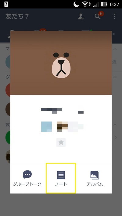 (1)「友だち」から「グループ」をタップして、「ノート」を開きます。