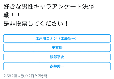 こちらのアンケートの場合は、コナンの好きなキャラの投票となっていますね。