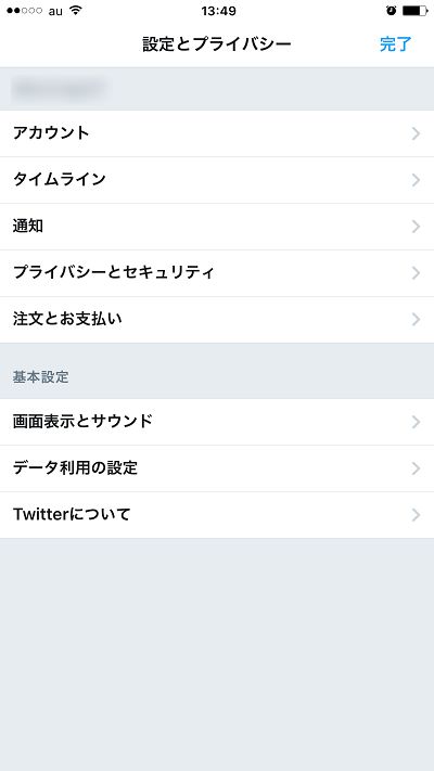 Twitterのプロフィール画面から、「歯車」マークを押すと設定画面に移動します。