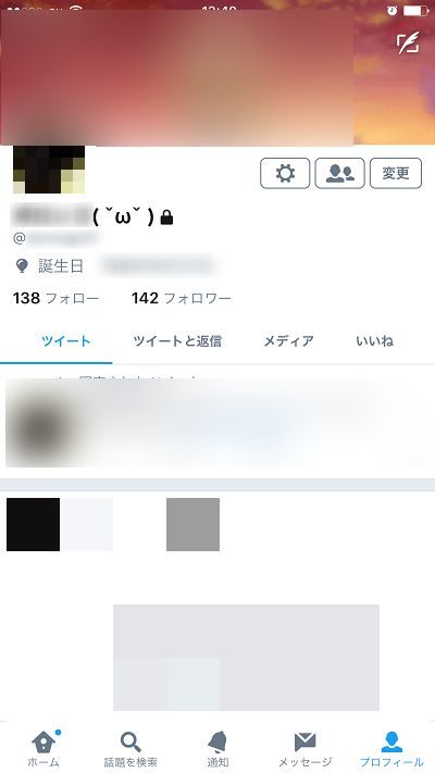 プロフィール画面に戻り、アカウント名の横に「鍵」が付いていれば成功です