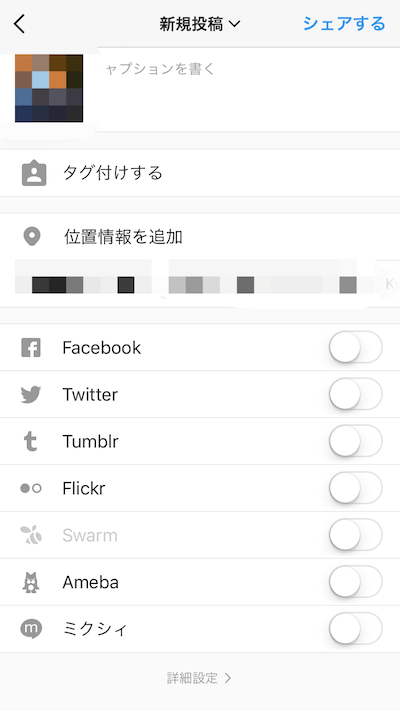 余談ですがキャプションでうまくハッシュタグを使いこなすといいねも増えますよ。最後に右上のシェアを押すと