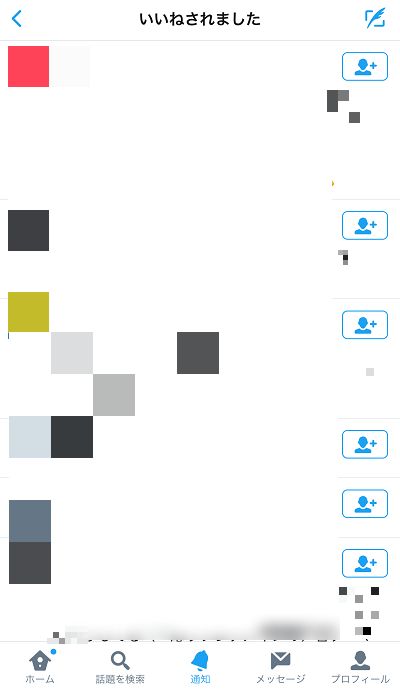 すると、一覧にブロックしたアカウントや非公開のアカウントの情報が表示され、いいねの数との差異が一覧で無くなります。