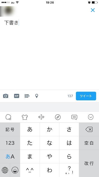 下書きをタップし、ツイート画面に下書きが写されます