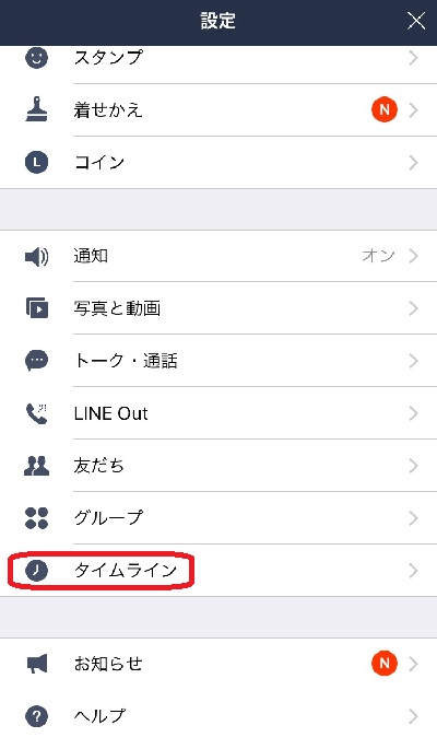 設定欄でタイムラインをタップ