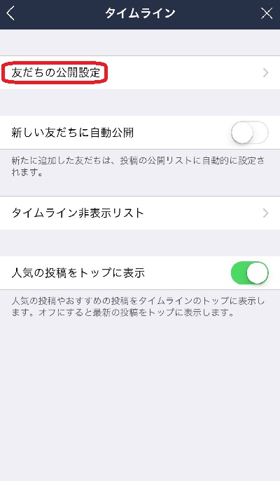 次に友達の公開設定をタップ
