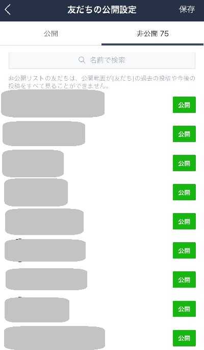 登録している友だち全てを非公開にすれば完了です。