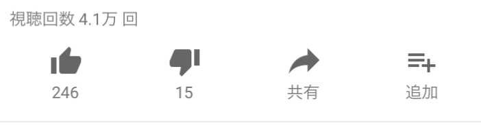 Youtubeのアプリで動画を視聴していると、「いいね」「共有」「追加」などのメニューが動画の下についています。その中の「共有」をタップします。
