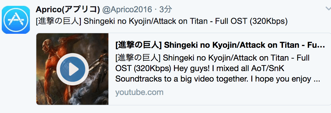 Twitterの投稿でYoutubeを埋め込み