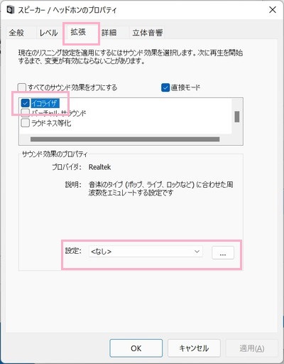 Windows11のイコライザーで音質向上させたい