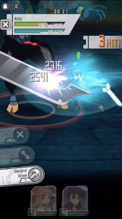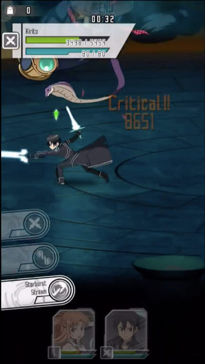 ダウンロードをしたらチュートリアルが始まります。血盟騎士団(KOB)副団長、SAOのヒロイン「アスナ」を操作して、迷宮区の奥に進もう! 基本的な操作は、 ・指をタップして攻撃 ・指をドラッグしてキャラを移動 ・左右下フリックで回避 ・上フリックでジャンプ