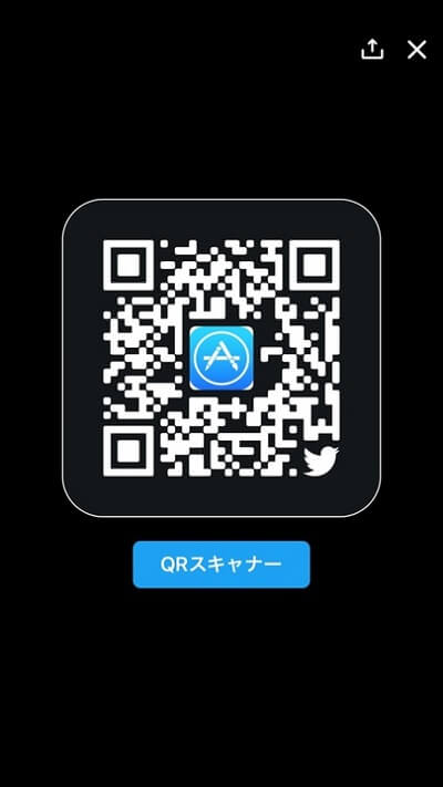 青色背景の「QRスキャナー」をタップすることで、TwitterのQRコードの読み取りが行えます!相手のを読み取る際には、相手のQRコードが表示されている状態で、QRコードがしっかり画面内に入っている状態にしましょう。