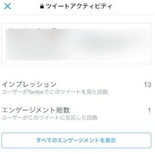 それぞれの行動別の回数も閲覧する事ができ、スマホの公式アプリの場合は、「すべてのエンゲージメントを表示」をタップする事で表示がされます。