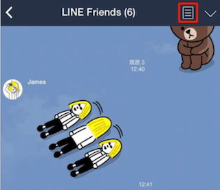 次にグループトークルームの右上にある[ノート]ボタンをタップ、タイムラインの右上にある[タイムラインメニュー]ボタンをタップし、希望するグループのアイコンをタップで行えます。