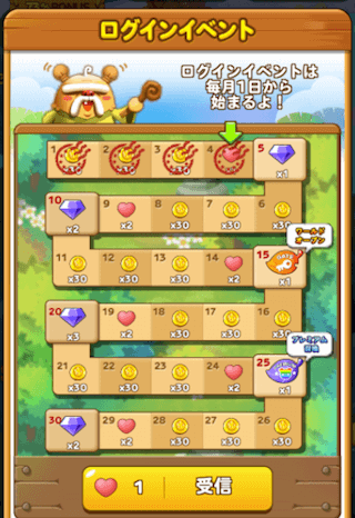 毎日ログインすれば月の初めからそこに書いてあるアイテムなどを貰えます。 最終的にはルビーも貰えるので、毎日ログインしたくなりますね!