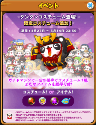 コスチュームを手に入れると同時にアイテムもゲット出来ますので、是非やってみて下さい! またコスチュームではイベントを開催することがあります。