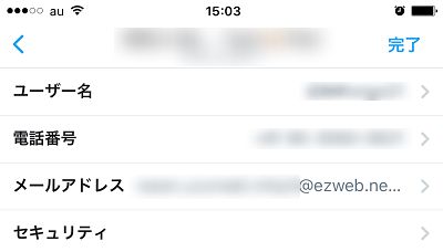 アカウント情報が表示されますが、今回は「メールアドレス」の右の「>」をタップして下さい。