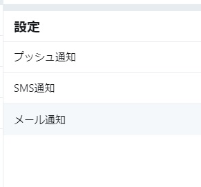 通知設定に表示されている「プッシュ通知」・「SMS通知」・「メール通知」は、タップして詳細画面を開き、ボタンをオンにすることで通知を有効にすることができます。
