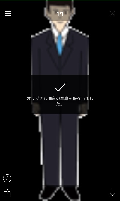 画像のように「オリジナル画質の写真を保存しました」と表示されれば保存完了です。