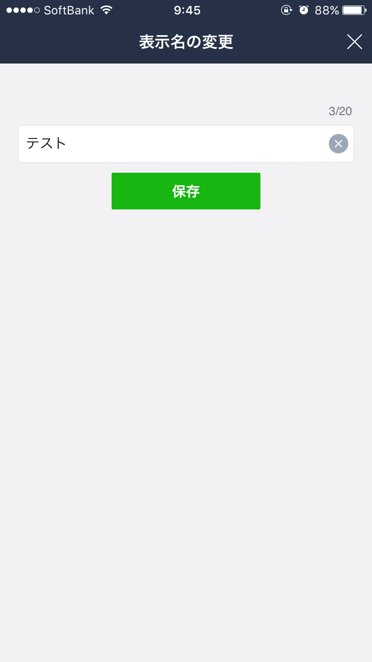入力後、「保存」をタップしてください。 名前(表示名)の変更はこれで完了です。