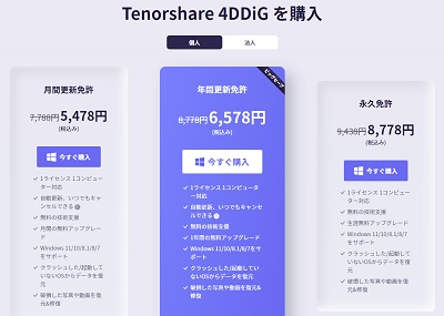 Tenorshare 4DDiGデータ復元ソフトのプラン