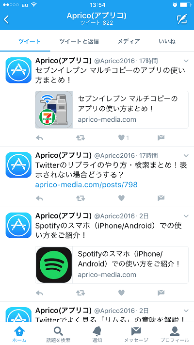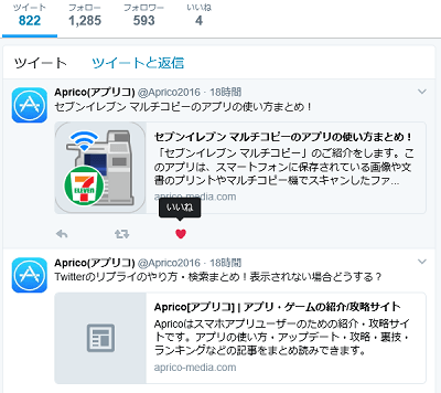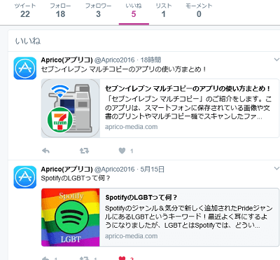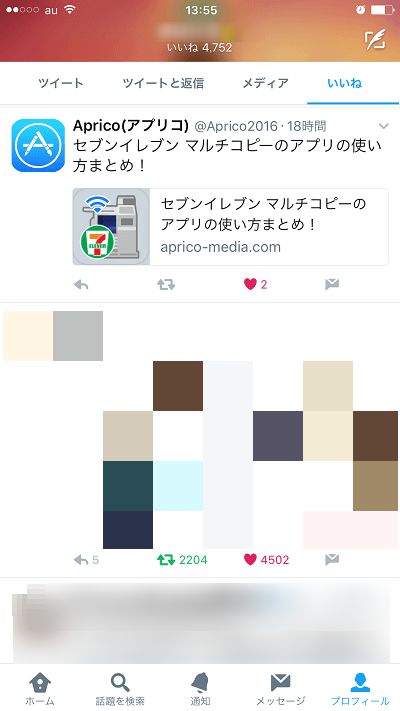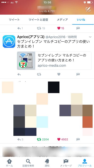 お気に入り(いいね)機能で登録したユーザーのツイートは、プロフィール画面で確認する事が出来ます。