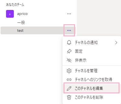 Teamsの「チーム名」も変更することができますよ。アプリウィンドウ左側メニューの「チーム」をクリックしてチームメニューを開き、自分が作成したチームの「…(その他のオプション)」ボタンをクリックしてメニューを開き「チームを編集」をクリックしましょう。