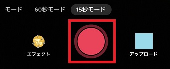 撮影をする場合は赤い丸をタップしてください。もうすでに撮影しているユーザーの方は、使いたい動画などをアップロードしてください。