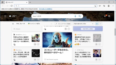 これでEdgeのホーム画面が白背景のシンプルなものに変わり、ニュースフィードを消すことができますよ。ただし注意点として、この方法はニュースフィードを完全に削除しているわけではないため下方向にスクロールするとニュースフィードが表示されてしまいます。あくまで、何もしない場合にニュースフィードが表示されないといった形になっているわけです。