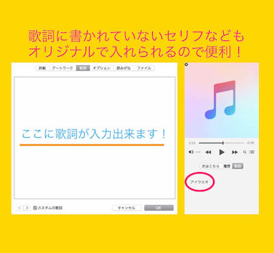 iTunesの歌詞は、自動で取り込めるものもありますが、提供されていないものは手入力が必要です。