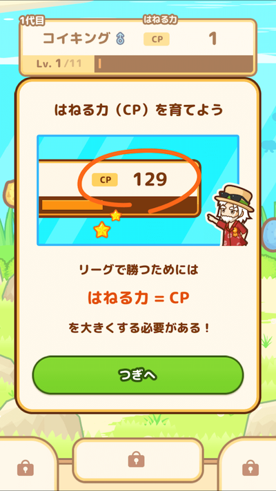 コイキングの全てはこの「CP」で決まると言っても過言ではありません! はねる力=CP というからには、CPを大きくすればするほど、コイキングは高くはねることができるのです!