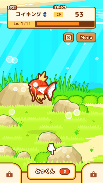 コイキングをとっくんさせるには、 画面の真ん中下の「とっくん」をタップします!