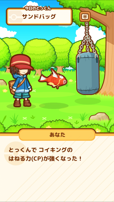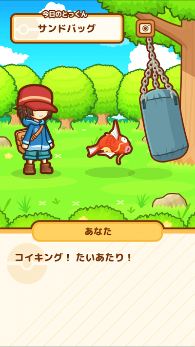 ランダムで今日のとっくん内容が決まります! 今回は「サンドバッグ」です。 コイキングとサンドバッグは見たことのない組み合わせですね