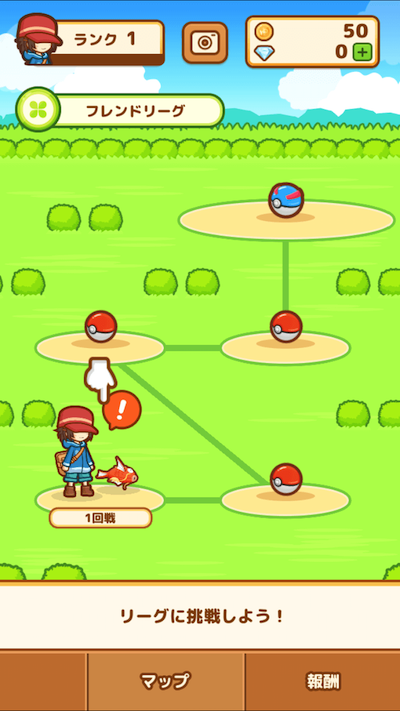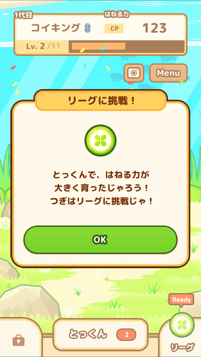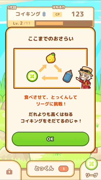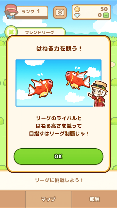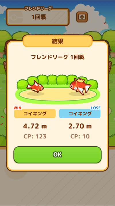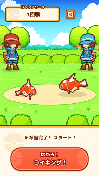 このゲームの基本的な流れは、 ・コイキングに食べ物をあげてCPを増やす! ・とっくんをしてCPを増やす! ・リーグで戦う! という流れになります! たくさん育てて、リーグのチャンピオンを目指しましょう!