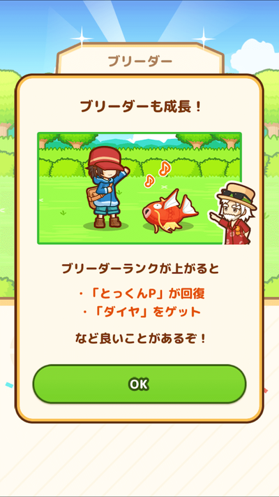 一回戦で勝利したことでブリーダー経験値を獲得しました! ブリーダーランクが上がると ・とっくんポイント回復 ・「ダイヤ」をゲット などの良いことがあります!