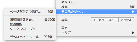 GoogleChromeの右のメニューを開き「その他のツール」→デベロッパーツールを選択しましょう。