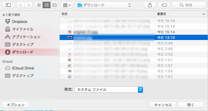 投稿ボタンを押すと画像のアップロードの選択ウィンドウが表示されます。